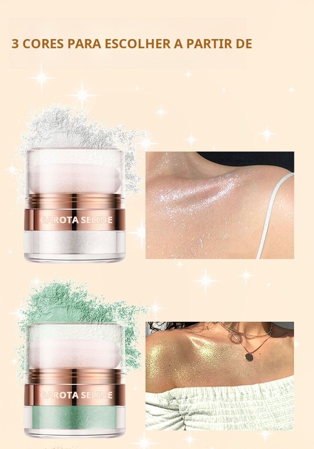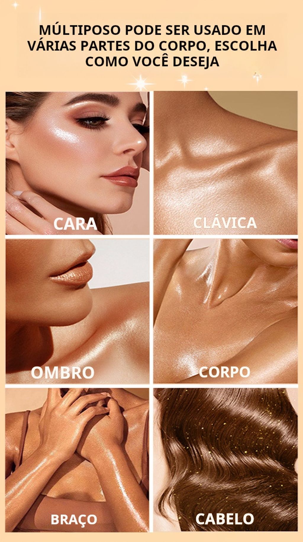Um pó corporal 2 em 1 que combina efeito iluminador + contorno para realçar suas curvas, valorizar o colo e dar aquele glow natural irresistível!