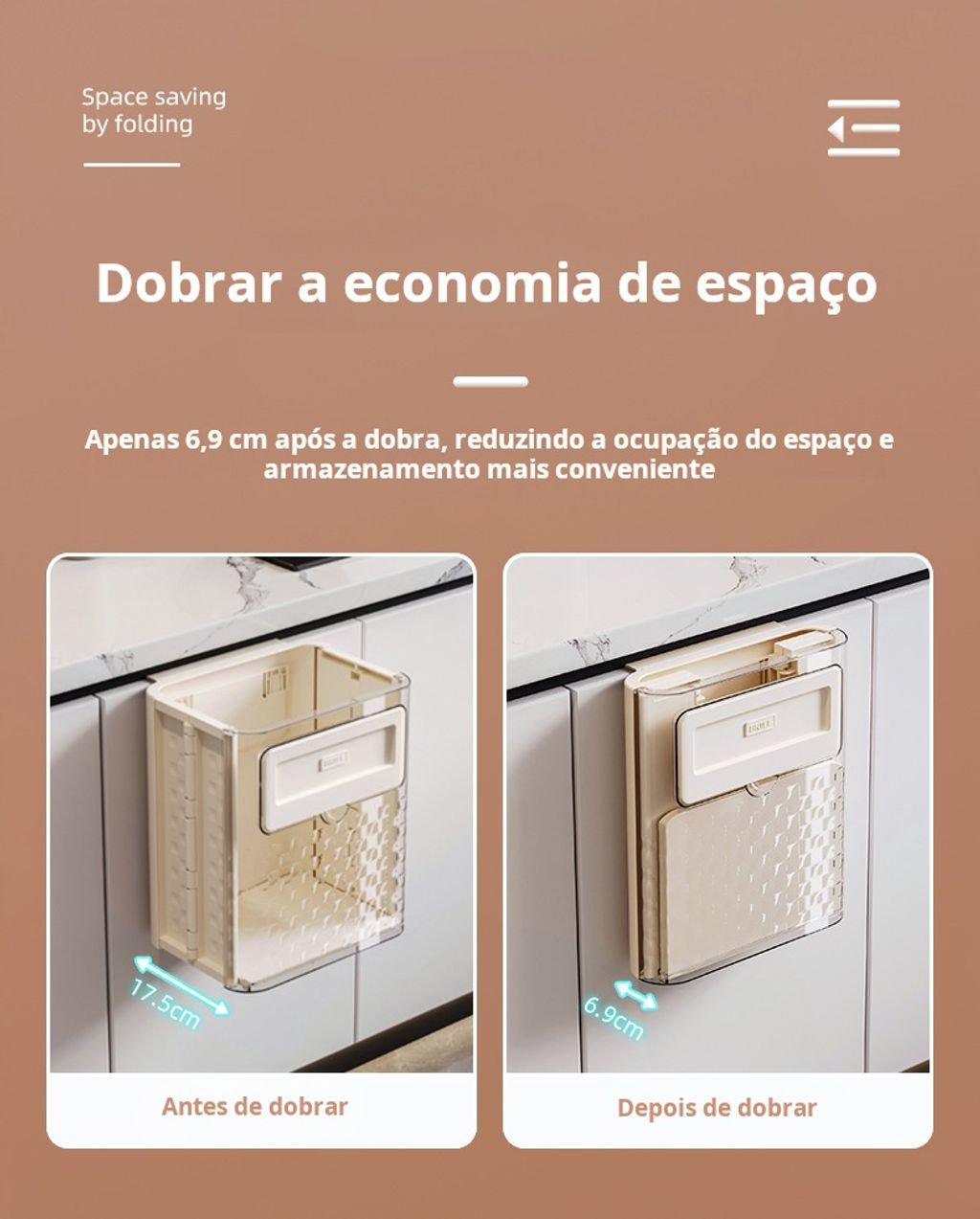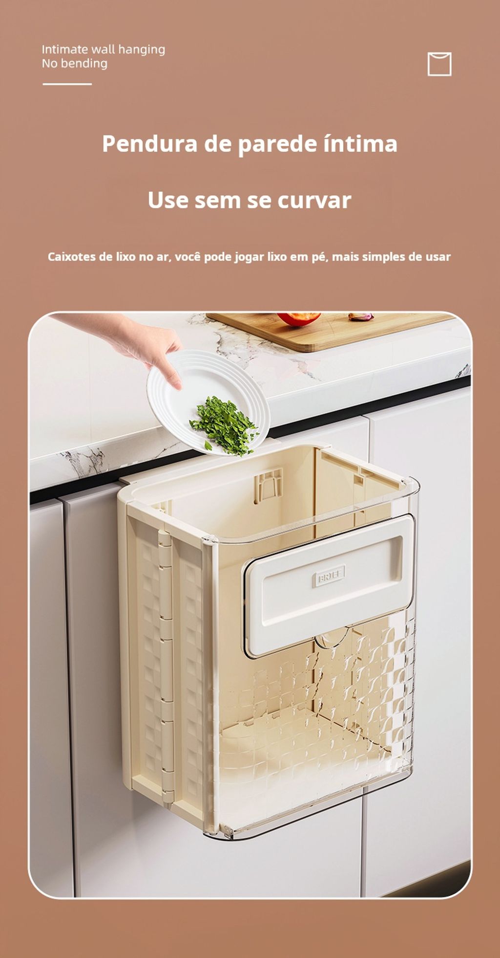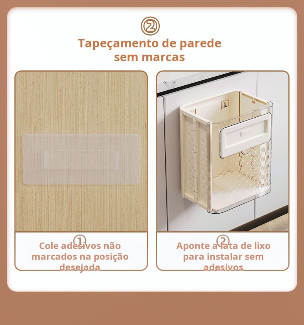 Esta lixeira de cozinha é projetada para ser pendurada na parede, economizando espaço e mantendo sua cozinha organizada. Feita de material durável, é ideal para resíduos diários, como cascas de frutas e restos de alimentos. Seu design compacto permite instalação em portas de armários ou paredes, facilitando o descarte de lixo durante o preparo das refeições.