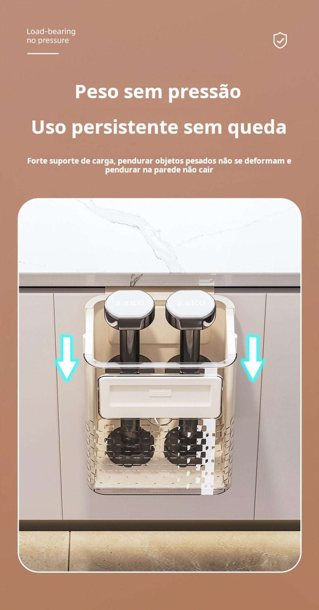 Instalação Versátil: Pode ser pendurada em portas de armários ou fixada na parede.