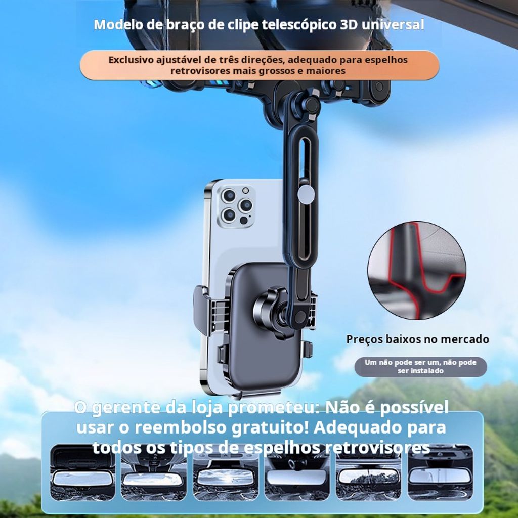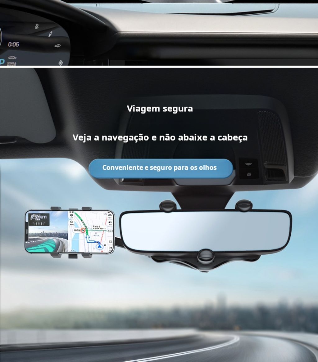 Design Compacto: Ocupa pouco espaço e não obstrui a visão do motorista, proporcionando segurança adicional durante a condução.