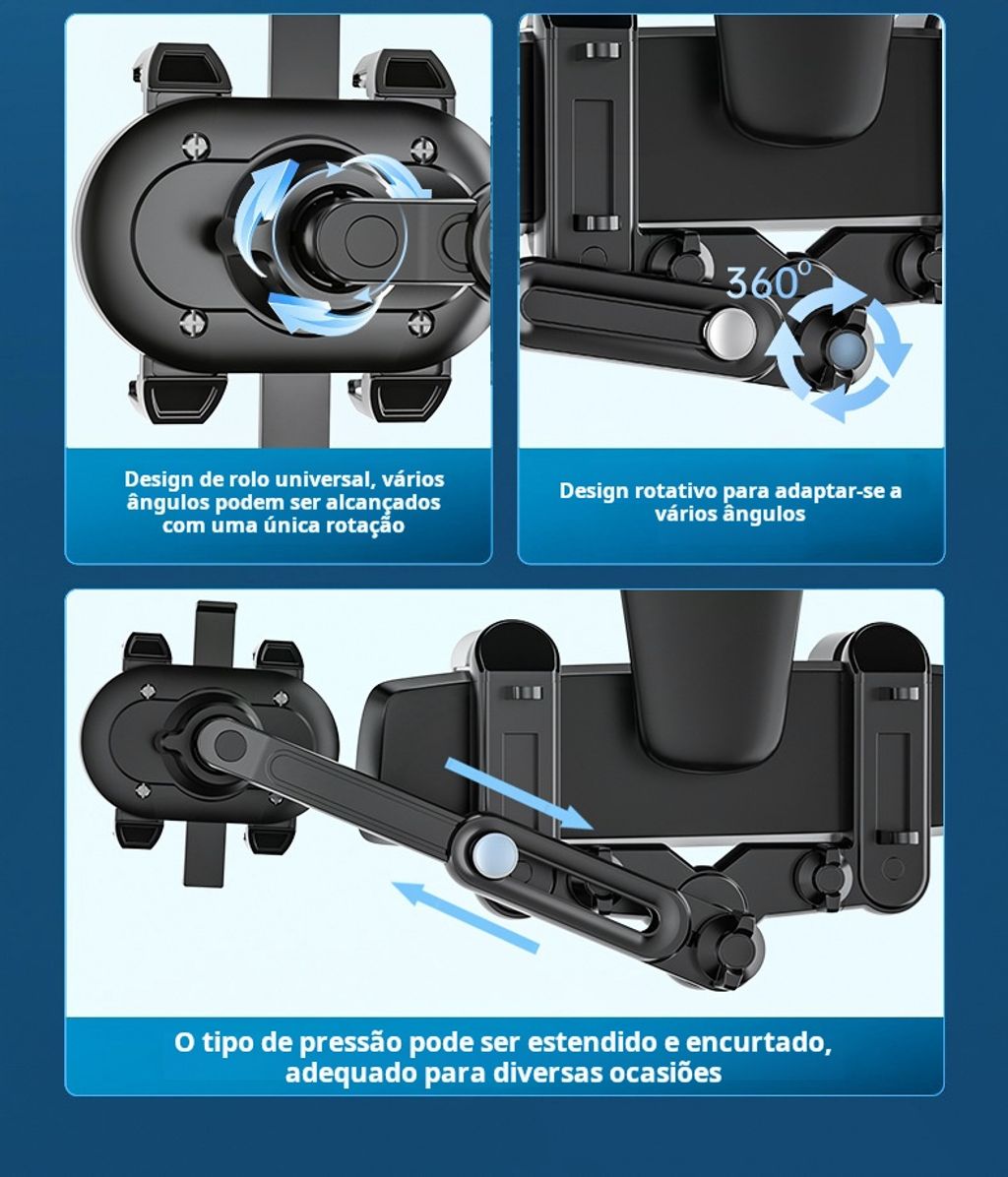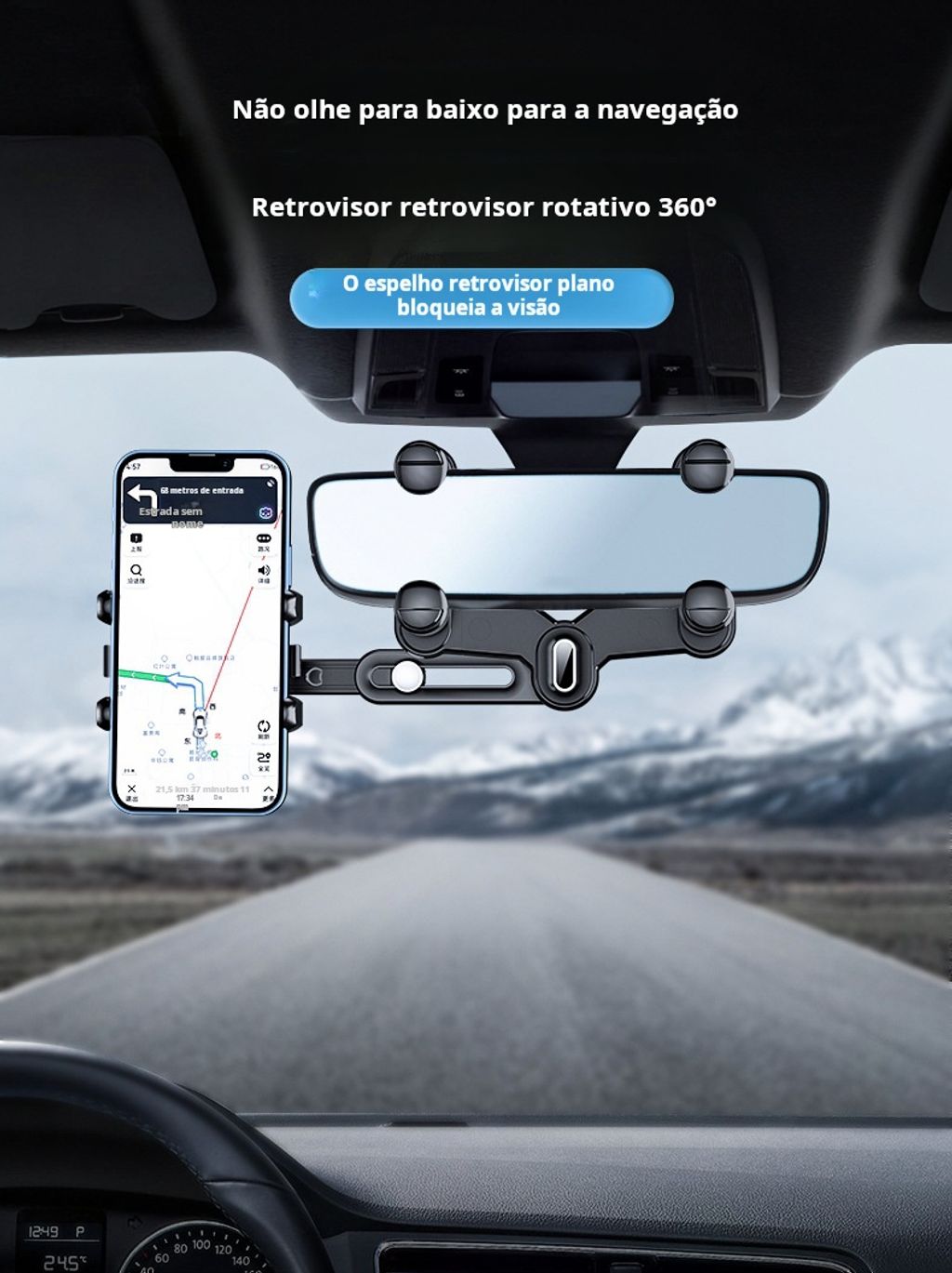 Rotação de 360°: Permite ajustar o ângulo de visão conforme necessário, facilitando o uso de GPS e chamadas em viva-voz.