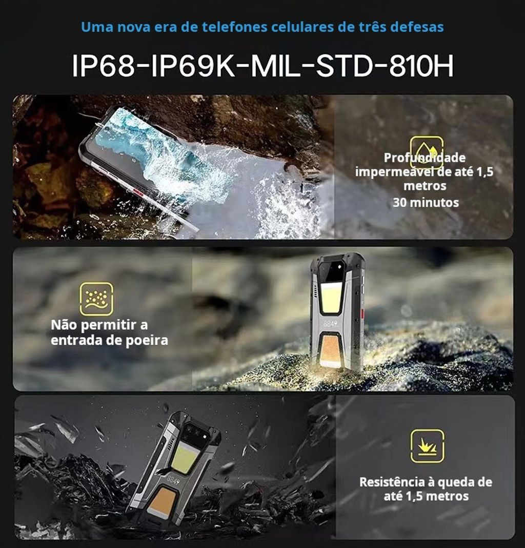 Durabilidade Superior: Resistente a quedas, poeira e água, ideal para ambientes exigentes.